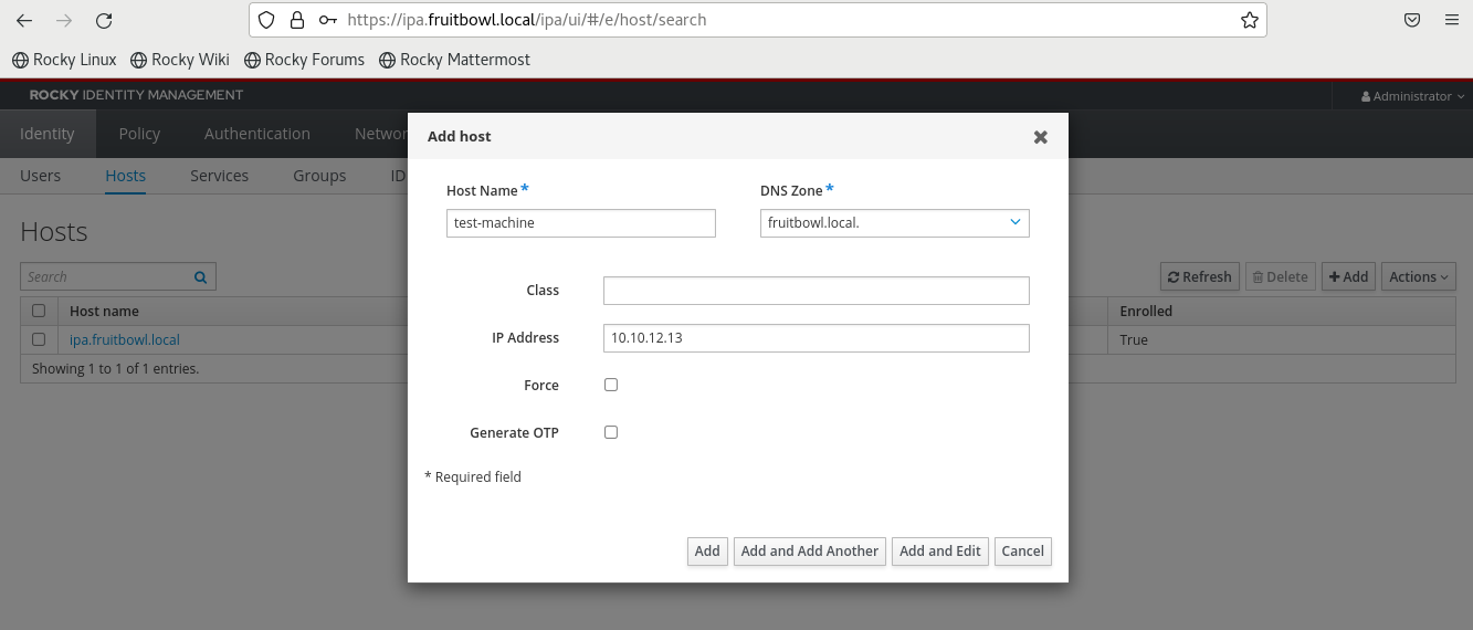I know I said we were more or less done with FreeIPA, but we need to create a host principal for our Windows client, matching both the hostname and IP address of the machine.